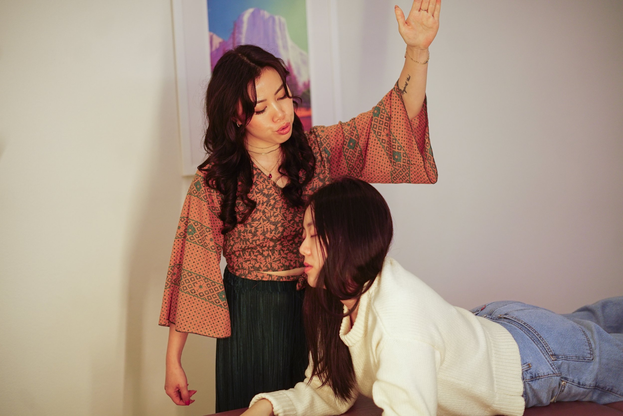 Think of it like an energetic massage — designed to help you release tension, stress, and stored emotions by shifting energy and expanding your nervous system capacity.